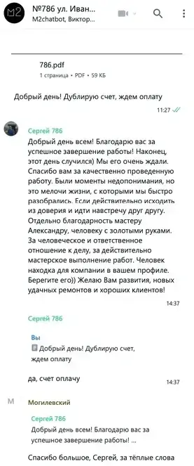 Держим вас в курсе проведенных работ,